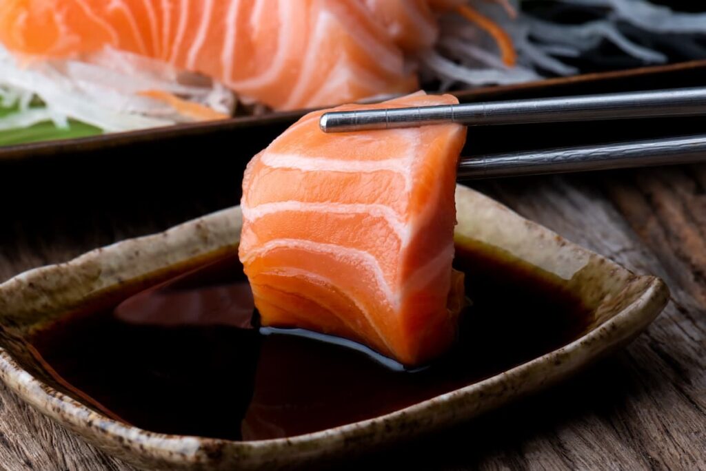 - La Salsa de Soja: Utiliza la salsa de soja con moderación. El objetivo es realzar el sabor natural del pescado, no ahogarlo. Sumerge solo una pequeña esquina de la pieza de sashimi en la salsa, y si el pescado tiene un lado con piel o grasa, sumerge ese lado para no saturar la carne.