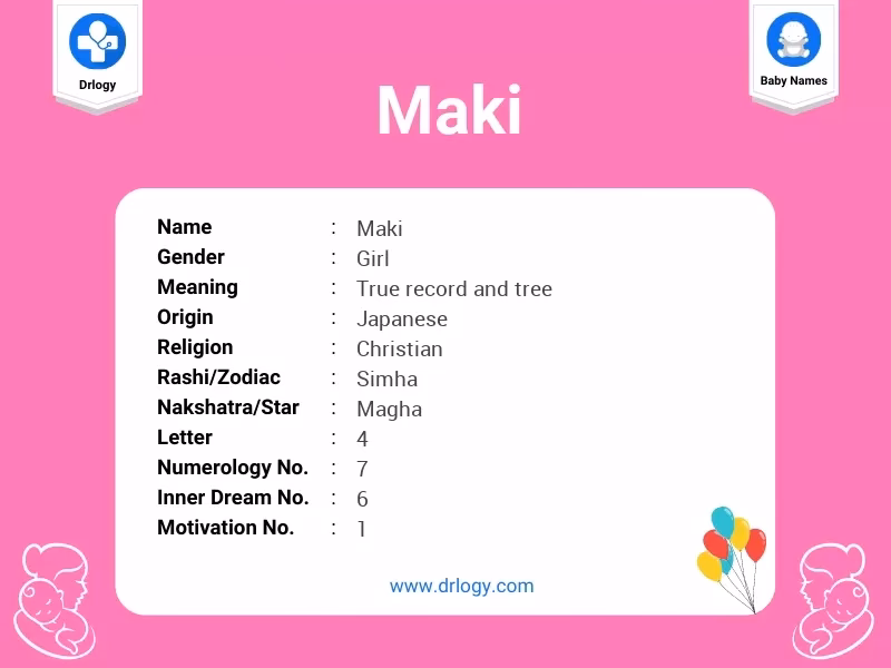 Según la numerología, el nombre Maki resuena con el número 4, lo que sugiere habilidades organizativas, un enfoque práctico de la vida, fiabilidad, trabajo duro, estabilidad y un fuerte sentido de la responsabilidad.