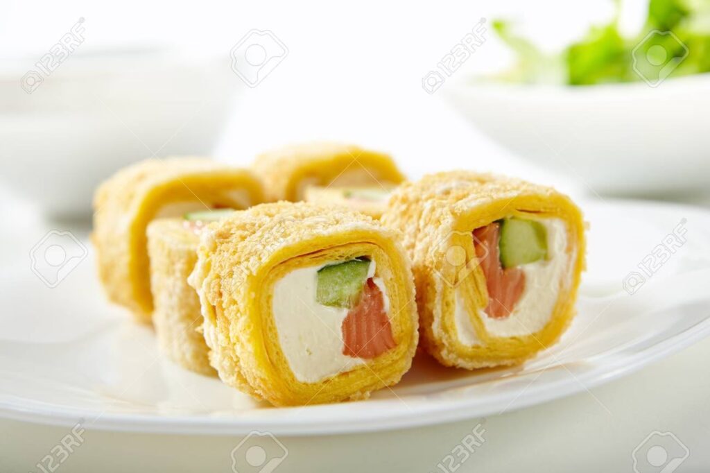 Una vez que el arroz está dispuesto, llega el momento de los rellenos. Aquí es donde la creatividad no tiene límites. Desde los clásicos trozos de pescado fresco como atún o salmón, hasta mariscos cocidos, vegetales crujientes como pepino o aguacate, tortilla japonesa (tamago), o incluso ingredientes más occidentales como queso crema o pollo teriyaki. La elección del relleno es lo que define el carácter y el sabor final de cada rollo.