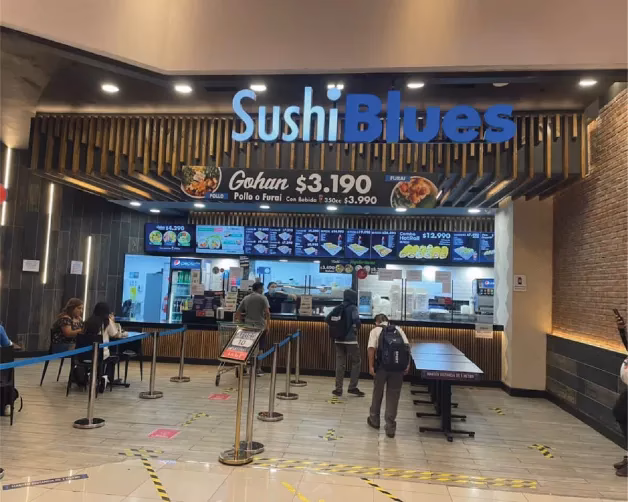 La música también late con fuerza en la segunda sala, la más amplia y grandiosa. Aquí, la vista se posa inmediatamente en una barra espectacular, no solo por su belleza sino por la maestría con la que los bármanes preparan cada cóctel, transformando cada bebida en una obra de arte líquida. Junto a ella, una barra de sushi permite observar al sushiman en plena acción, creando cada pieza con precisión y arte. Las mesas en esta sala son más amplias y cómodas, con opciones redondas ideales para grupos y también configuraciones íntimas para parejas que buscan una cena o comida verdaderamente especial. La combinación de la música, el diseño y la actividad en las barras crea una experiencia multisensorial que eleva la visita a otro nivel.