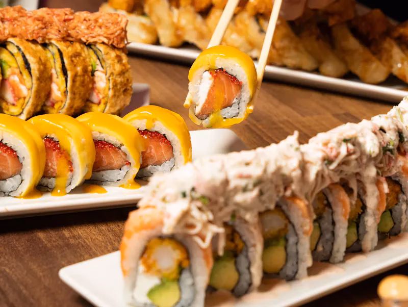 - Las opciones son infinitas: desde mayonesas picantes (spicy mayo) y salsas teriyaki, hasta aderezos de miso, reducciones balsámicas, salsas de trufa, chimichurri, o leche de tigre para estilos Nikkei. A menudo, el rollo ya viene con su propia salsa, por lo que no es necesario añadir más.
