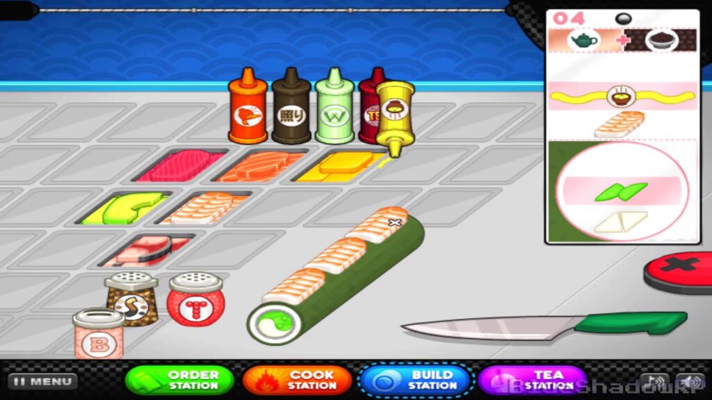 Considerada por muchos como la estación más crucial, aquí es donde tu creatividad y tu destreza en el sushi realmente brillan. Utilizando el ticket de pedido como guía, debes ensamblar los ingredientes dentro y fuera del rollo de sushi. Desde el tipo de pescado y los vegetales hasta las salsas y los aderezos, la variedad de opciones es asombrosa y crece a medida que avanzas en el juego. La clave es colocar cada ingrediente de manera estratégica y uniforme para que cada bocado sea una experiencia deliciosa. Un rollo bien ensamblado no solo sabe mejor, sino que también es más atractivo visualmente, lo que se traduce en mejores propinas.