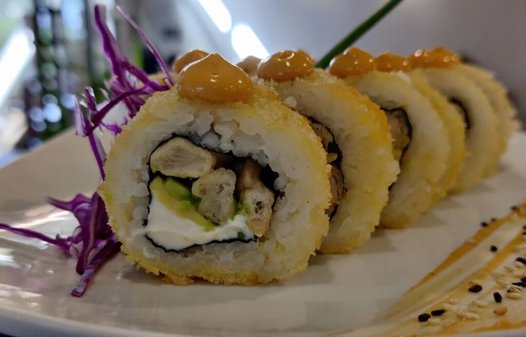 • Roll envuelto en Panko: Ideal para quienes disfrutan de una textura crujiente. Las opciones incluyen rellenos como Pollo teriyaki, queso crema y cebollín, o Camarón, queso crema y cebollín. El panko, un tipo de pan rallado japonés, le confiere un exterior dorado y crujiente que contrasta maravillosamente con la suavidad del interior.