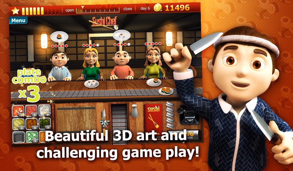 Se destaca por su combinación de hermosos gráficos en 3D, una jugabilidad desafiante que exige tanto memoria como rapidez, y la profundidad añadida por las opciones de personalización de restaurantes y las mecánicas estratégicas como trucos de cuchillo y servicio de sake.